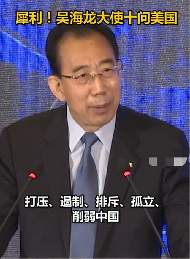 刚才听了一位外交官吴海龙的发言,个人认为说得非常好,不但有理有据,而且非常霸气震撼,因此分享给大家一起来听一听。全文如下:各位来宾,刚才我仔细听了阿林斯先生的发言,他对改善中美双方的关系提了不少积极的、具有建设性的建议。但是改善中美关系是两厢情愿的事情,需要双方相向而行。我以为美国的对华政策越来越偏离了正确的轨道,硬是把一个好端端的战略合作伙伴推定为战略竞争对手,把中国自身的发展和壮大视为对美国的挑战和威胁,这是美国犯下的严重的战略误判。